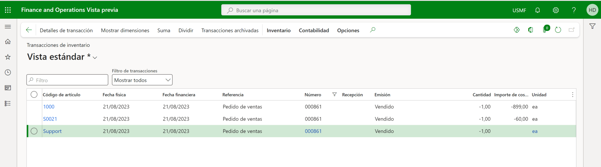 Sin embargo a nivel transaccional cada componente ha generado su propia transacción de inventario: