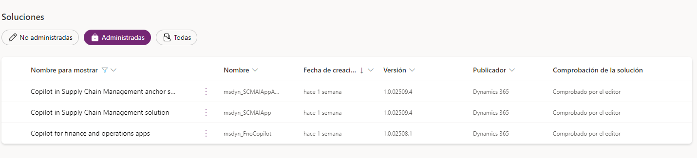 Ahora que ya tenemos todo implantado correctamente podremos ver en nuestro gestor de soluciones las nuevas soluciones implantadas: