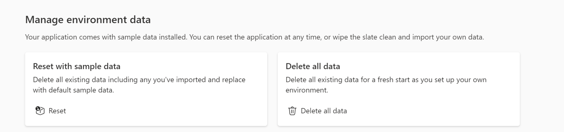 En esta pantalla además de videos introductorios, Microsoft ha añadido tutoriales para poder configurar el modulo. La primera vez que lo instalemos el propio sistema nos va a añadir datos de ejemplo, que para una primera revisión o para hacer una demo está ok, pero si queremos empezar de cero, al final de la pagina encontraremos la opción de eliminarlos: