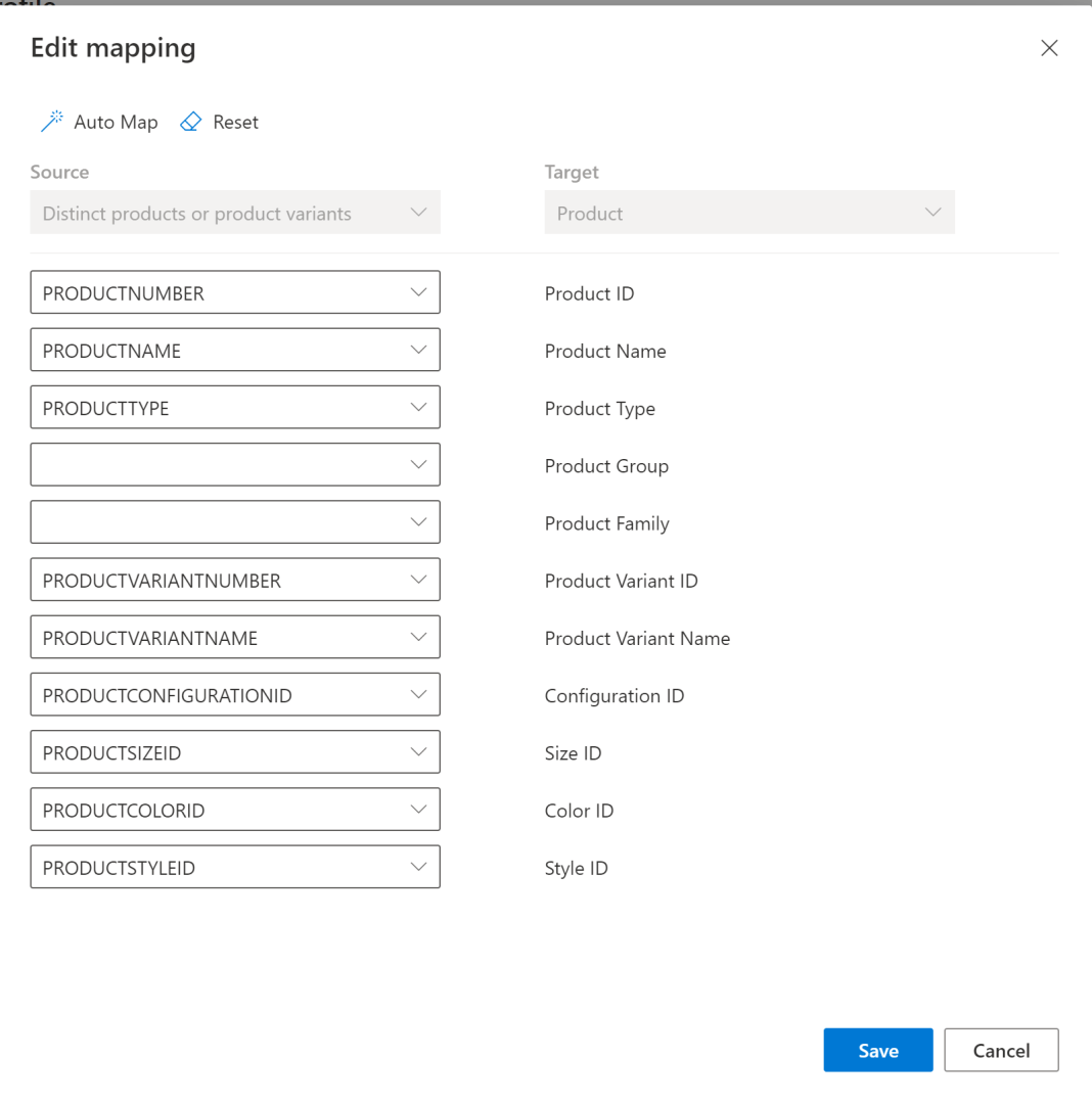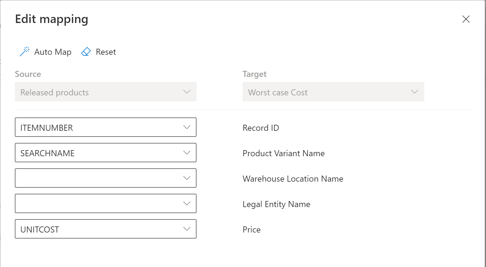 Mapearemos nuestros datos, es importante que como comentamos en puntos anteriores, tengamos añadidos los ID de los campos clave, ya que si solo tenemos añadidas las descripciones no podremos mapearlo con la entidad de FO.