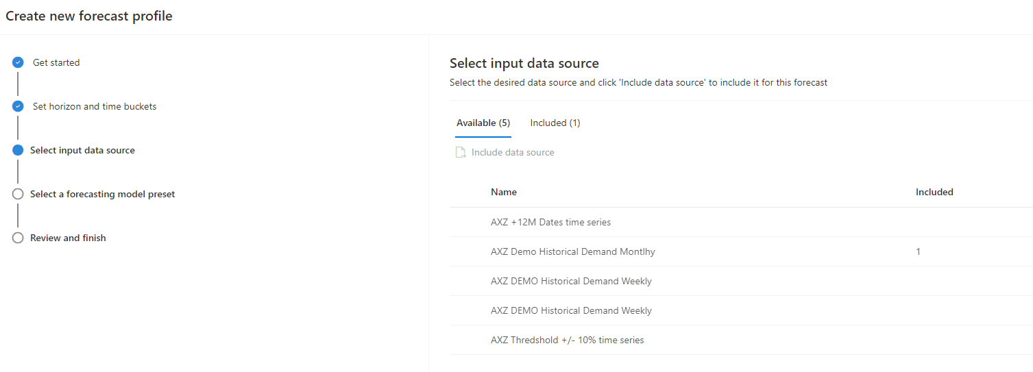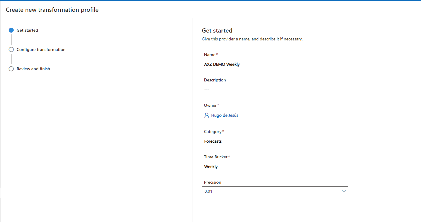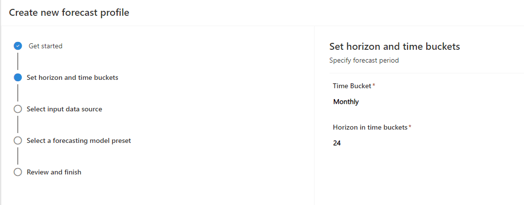 Con las transformaciones y cálculos terminados el siguiente paso será crear un perfil de previsión, para ello elegiremos los periodos (mensual, semanal, diario) y el horizonte: