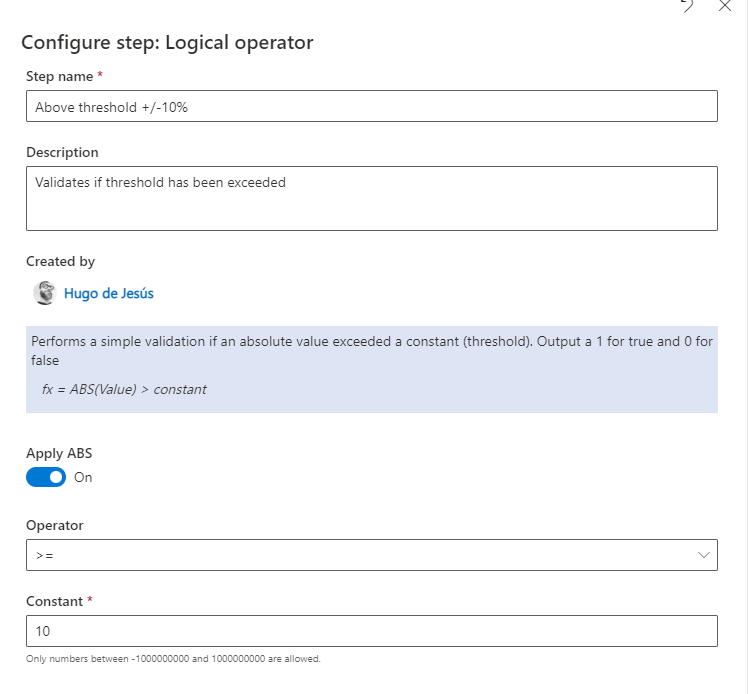 Mientras que el segundo valida si el valor calculado supera un umbral definido en %: