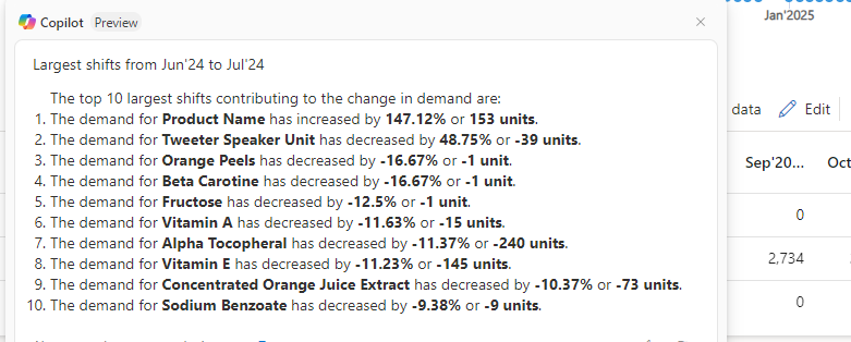 Otra solución que incluye Copilot desde hace poco es Demand Planning: